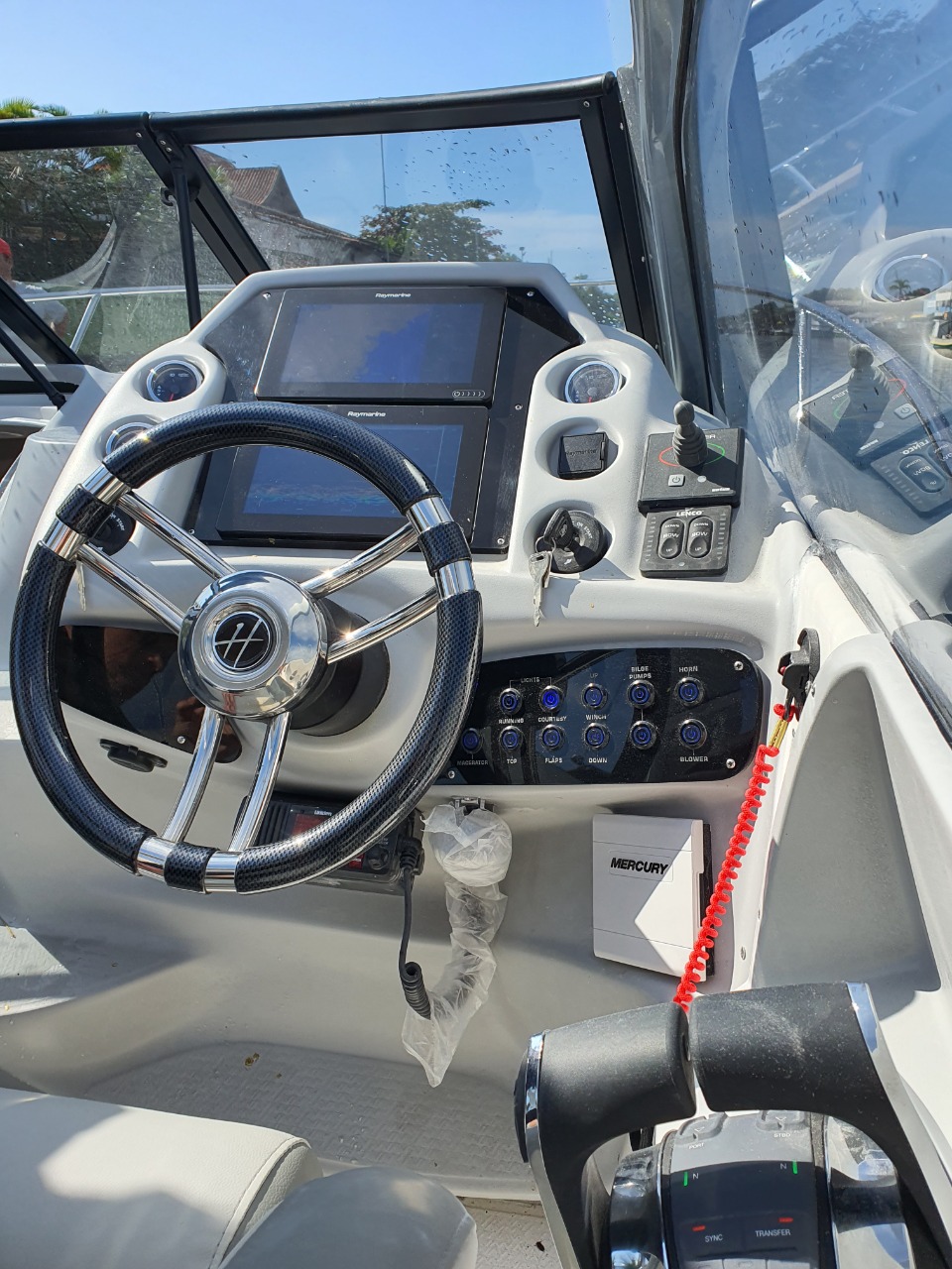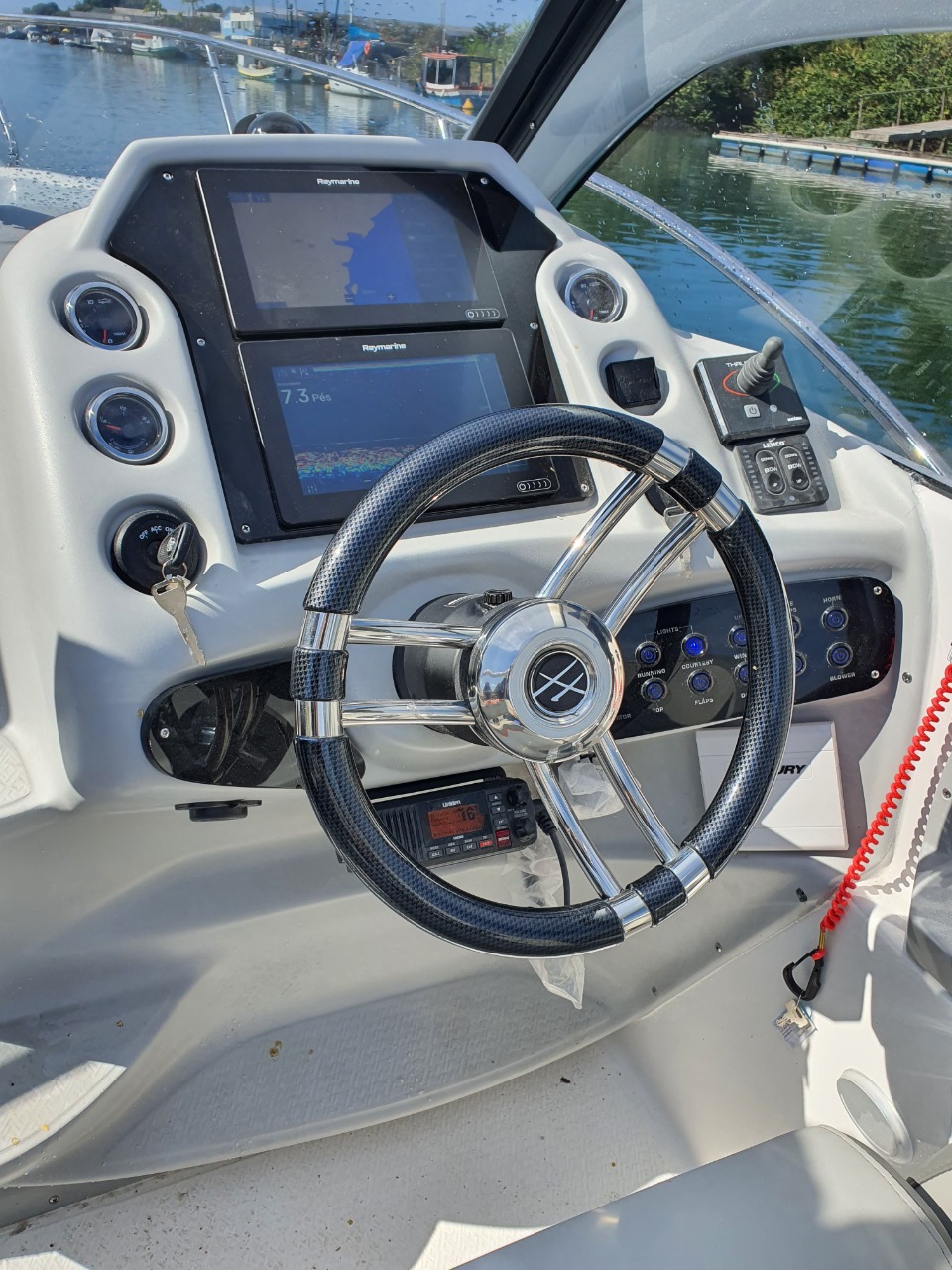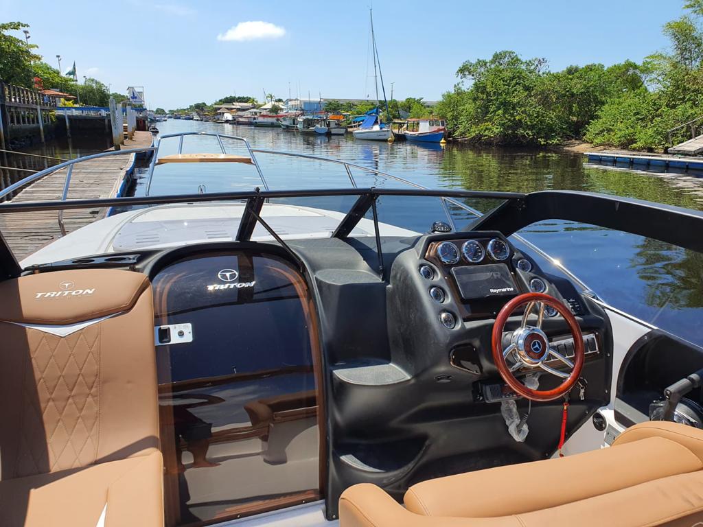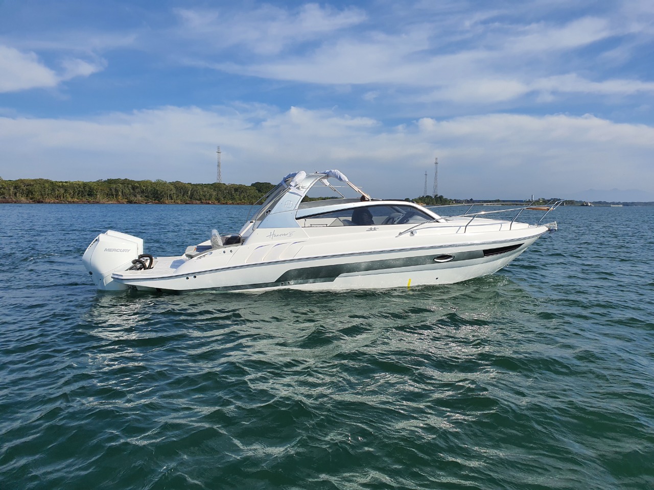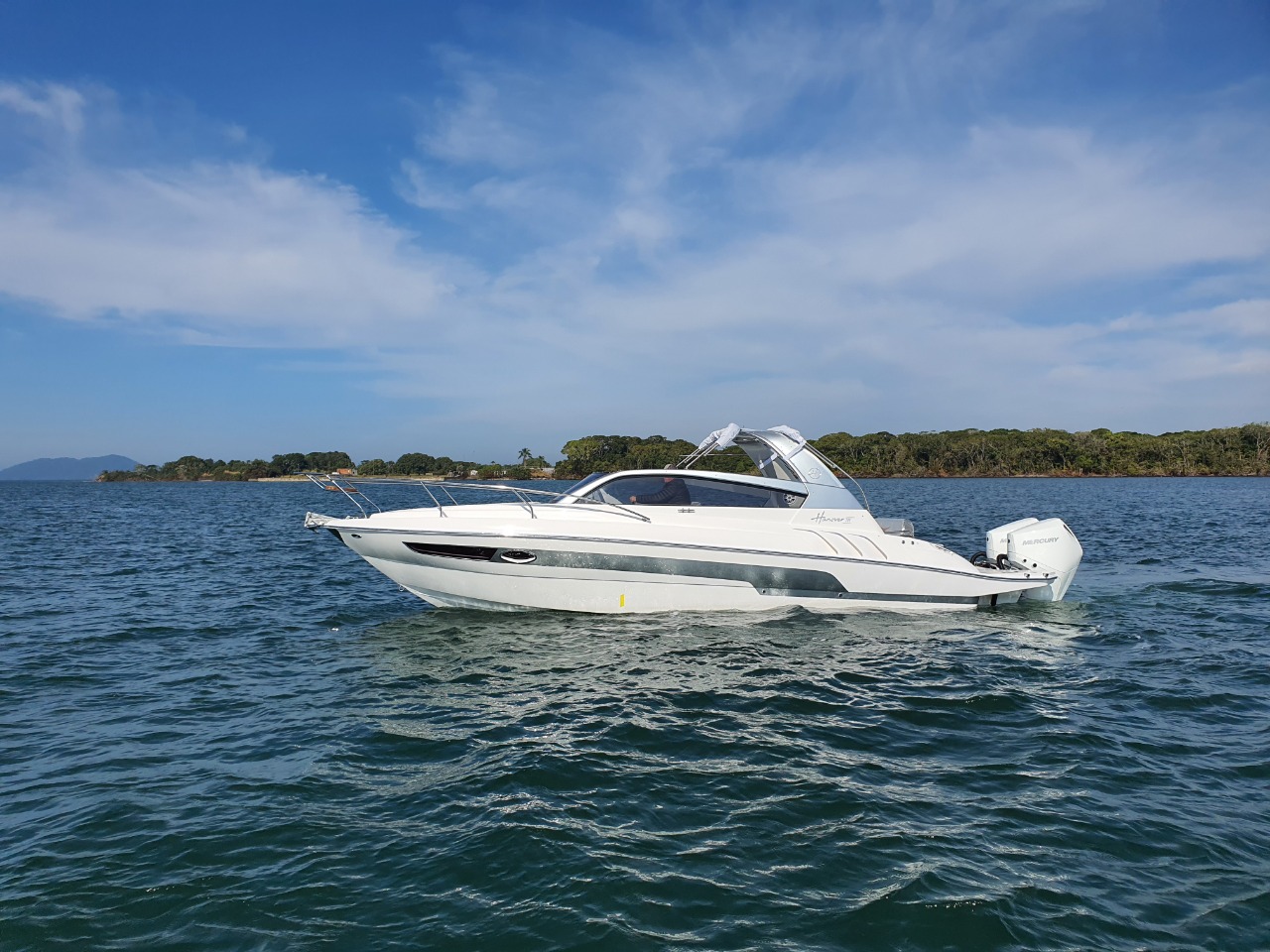 COMPRIMENTO: 9,40 m LARGURA: 2,70 m PESO: 2.300 kg LOTAÇÃO DIURNA/NOTURNA: 12/4 pessoas Quartos: 02 Banheiros: 01 MOTORIZAÇÃO: POPA 1X 300hp até 2X 300hp COMBUSTÍVEL / ÁGUA DOCE: 230 l / 100 l.